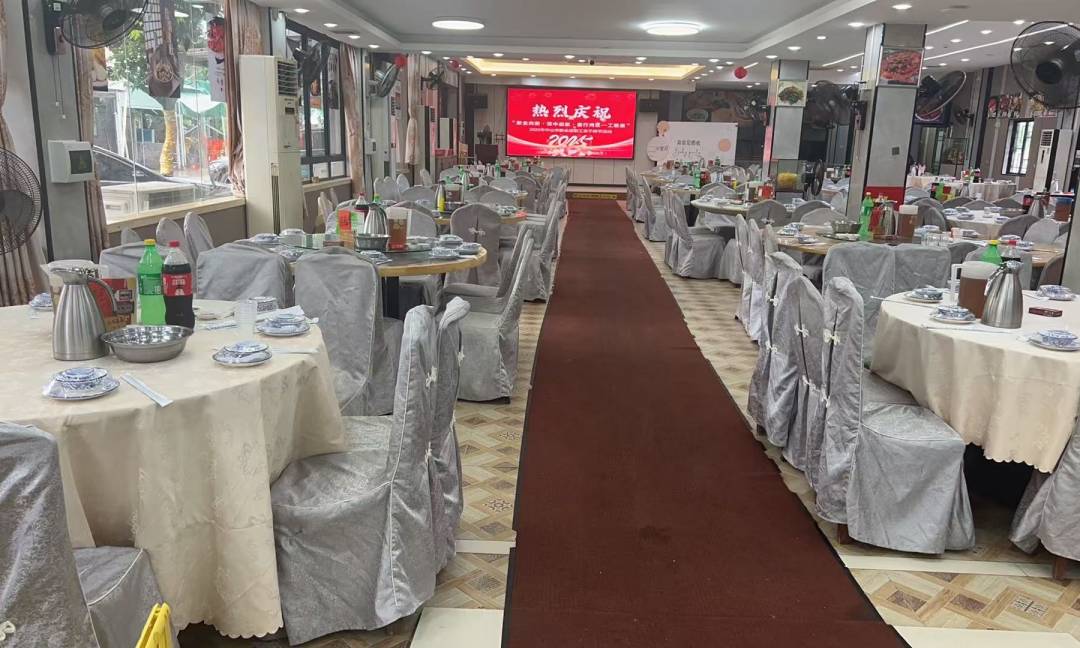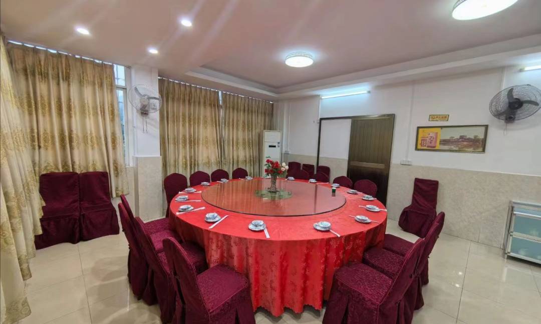 冬瓜肉片汤 白切鸡 滑蒸罗非鱼 梅菜扣肉 针菇双丸 菠萝糖醋排骨 松子栗米丁 肉碎茄子煲 木耳香芹炒肉片 蒜茸时蔬 米饭