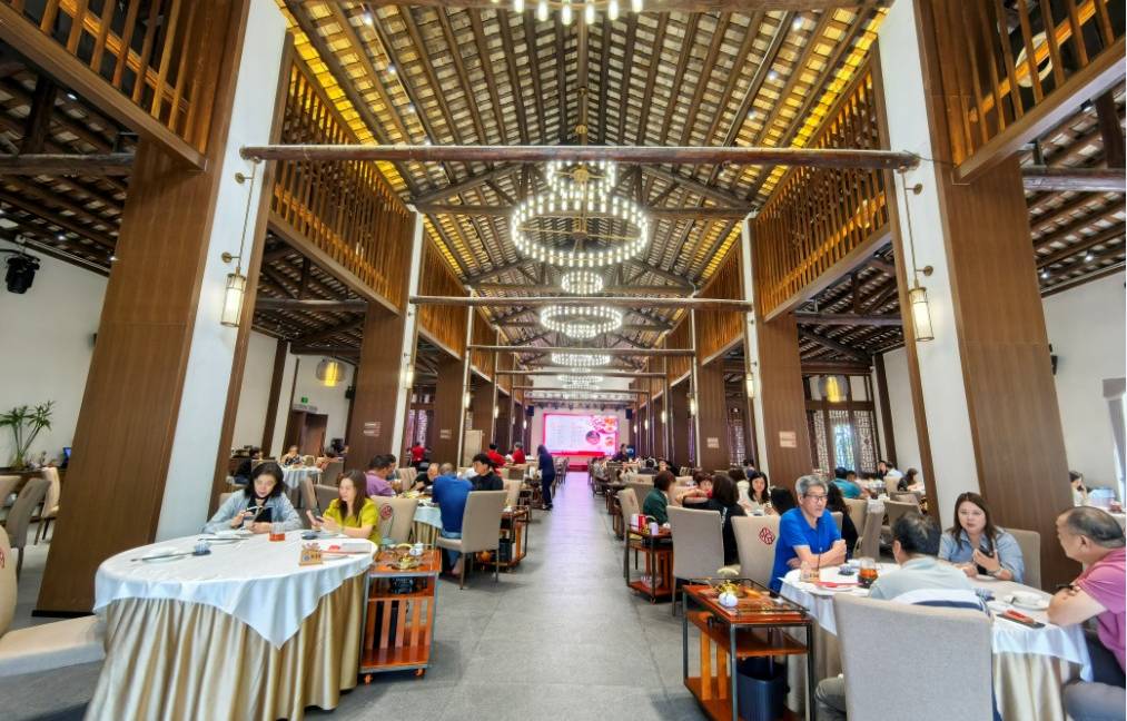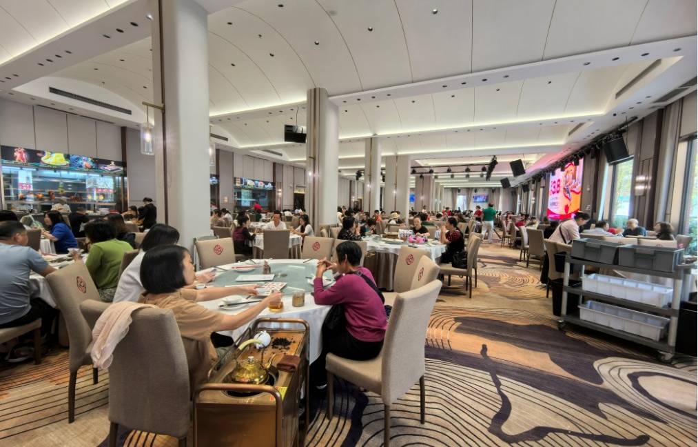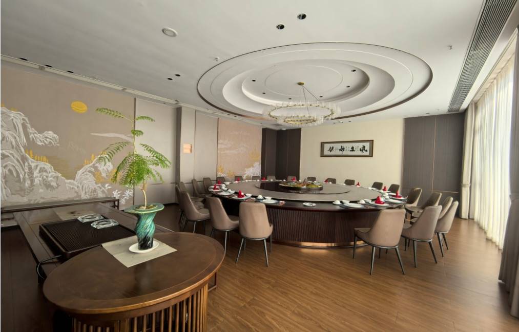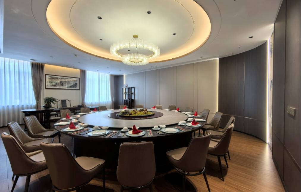 (大厅最大围数:)一楼宴会厅摆40席,一楼茶皇厅摆35席(细团旅游餐推荐用),大厅有柱子,有LED,有咪,有舞台,一楼富贵厅摆15席(大团旅游餐推荐用,无柱)(包间最大围数:)二楼VIP1容纳28人,VIP2容纳20人,VIP3容纳16人,VIP5容纳16人,VIP6-8容纳4席,VIP9-10容纳4席(房间带移动屏幕和音响)