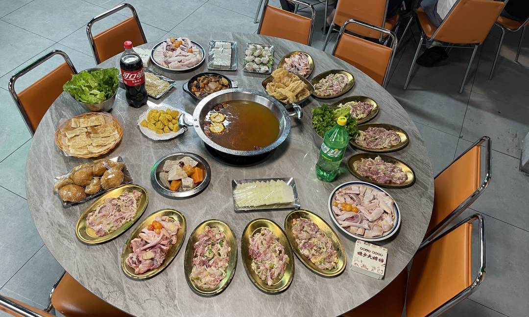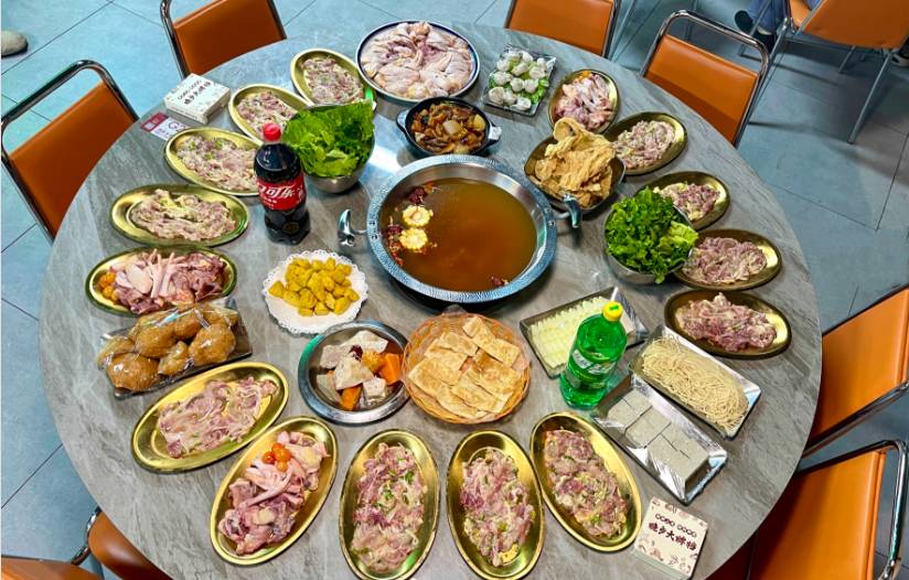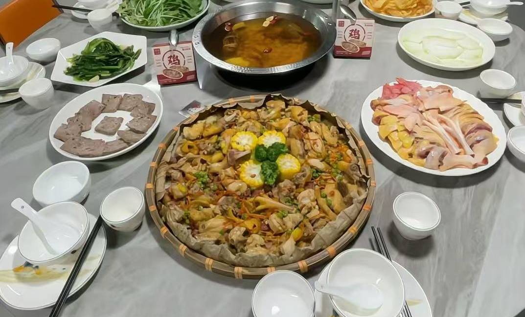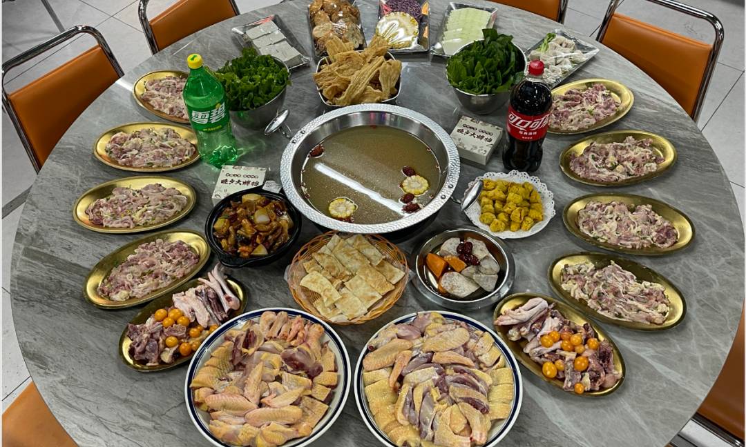 清补凉(1个大锅) 光鸡2.5斤三黄鸡:两只(起片)两只(斩块) 一共4只鸡:10碟鸡肉,2碟骨头 支竹:1份 豆干:1份 面筋:1份 冬瓜:1份 青菜:2份 生面:1份 猪肉饺:1份 酱香牛杂煲 小馒头 干炒鸡蛋粿条 米饭:任吃 大雪碧:1瓶 大可乐:1瓶 纸巾:2包