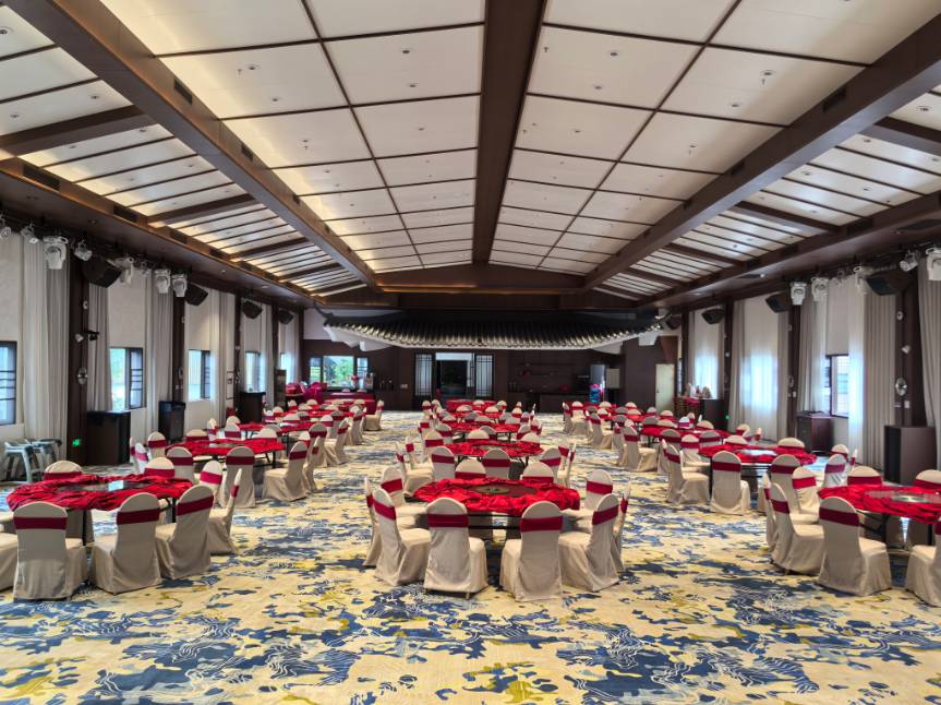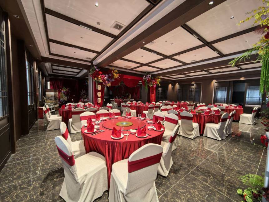 莲子淮山瘦肉汤 白切果园鸡1只 塘厦碌鹅 红烧水库鱼 金沙虾 土豆红烧肉 客家蛋角煲 番茄煮杂粮 高汤浸时蔬 合时水果 丝苗米饭