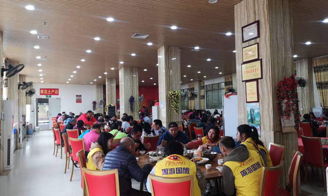 铜盘蒸黄花走地鸡, 清蒸本地鲩鱼, 豆角干蒸排骨, 黄花特色小炒, 粤北笋皇焖土猪腩, 肉松蒸山水豆腐, 蚝油焖山水豆腐, 椒丝肉丝炒土豆丝, 田园油青菜, 老火靓汤, 家乡白米饭