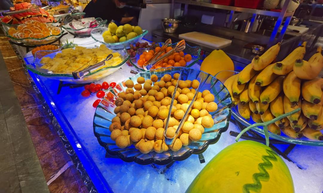 水果:西瓜,哈密瓜,百香果,火龙果,橙子,圣女果,小金桔,香蕉,青枣,橘子,香梨,红提,龙眼,(有季节性)