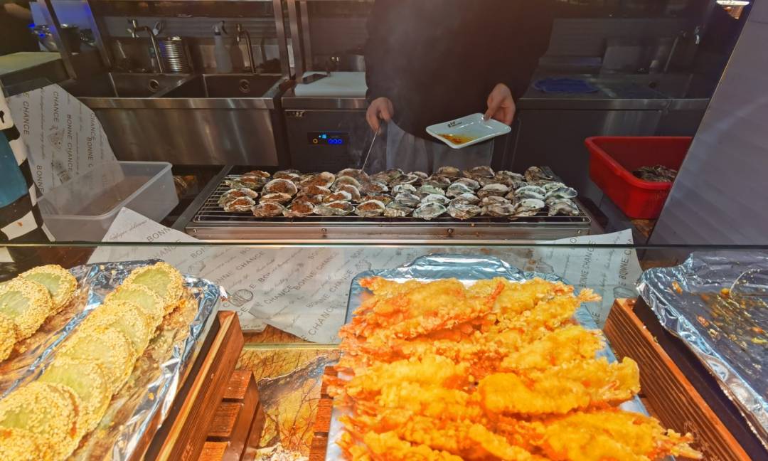 烧烤:烤生蚝,羊肉串,五花肉串,澳洲大串,牛肉串