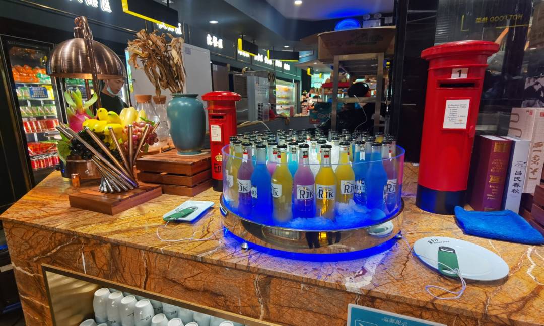 饮料;美年达橙味汽水.七喜.可口可乐.冬瓜茶,康师傅系列;冰糖雪梨.薄荷冰红茶.柠檬冰红茶.柠檬冰绿茶.菊花茶.蓝莓鲜果饮柠檬茶.茉莉蜜茶.酸梅汤.橙味鲜果饮.清涼茶.雪花小啤气.雪花啤酒.矿泉水.鸡尾酒.广东凉茶.水蜜桃原味酸奶.红枣酸奶.草莓冰淇淋.牛奶冰淇淋.柠檬味汽水.橙味汽水.可乐汽水.咖啡.椰奶.奶茶.玉米汁.草莓果汁.橙味果汁.金桔柠檬果汁.甘蔗马蹄果汁.酸梅膏.果冻。