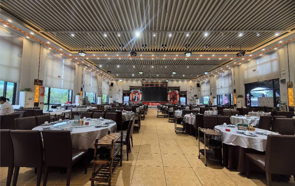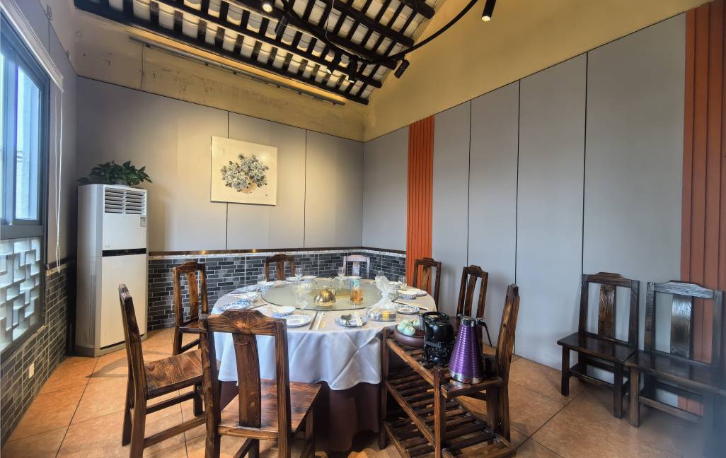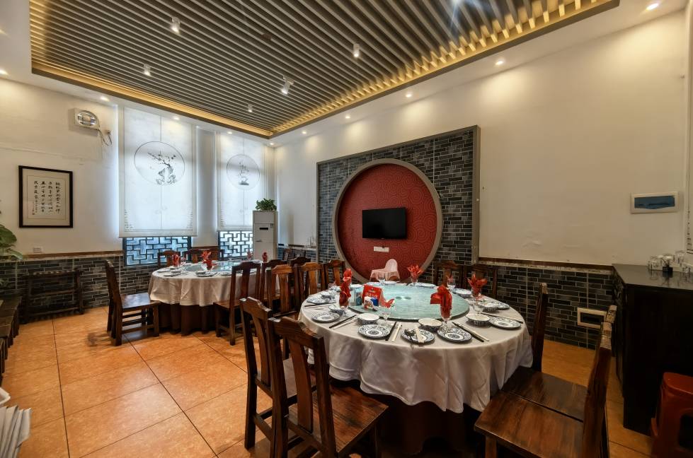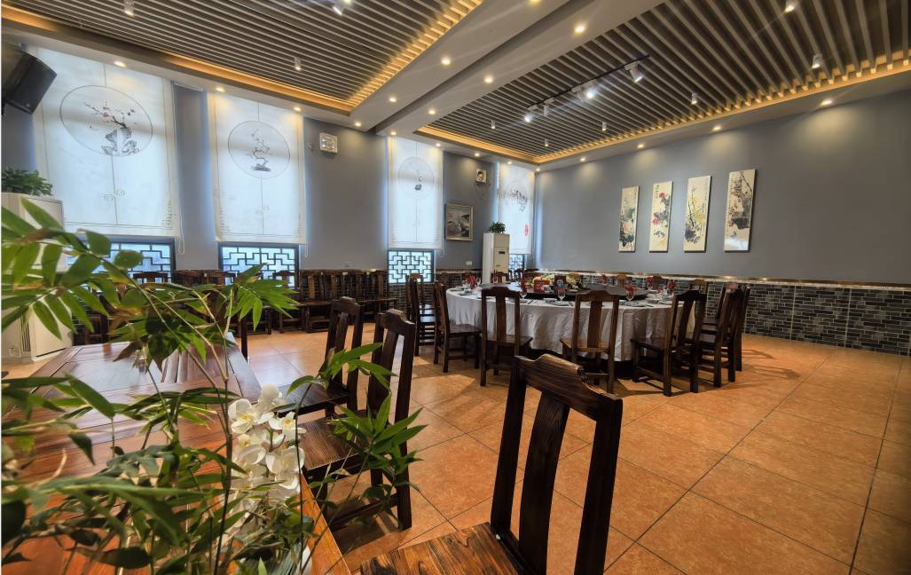 一楼大厅古色古香设计风格,可延开30席,四周无柱子遮挡,有LED屏,麦克风,一二楼均有包间,大包间最多可容纳30人,更有一个小厅,可摆放6席,适合包团客户
